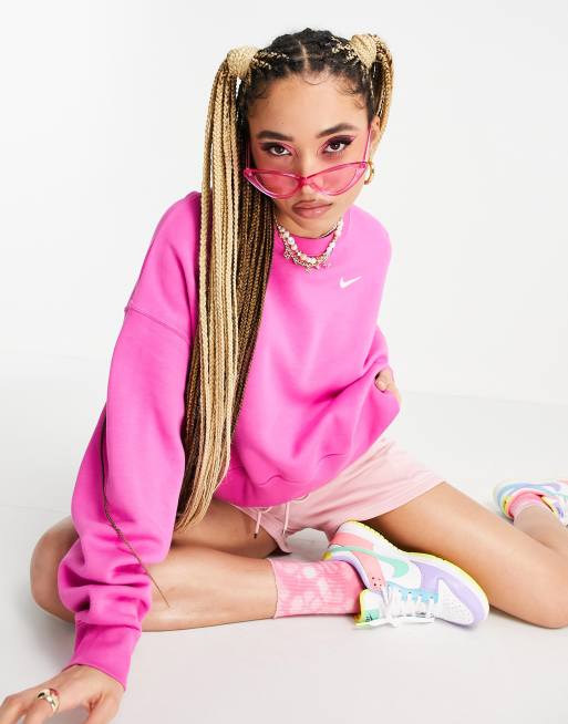 Nike - Oversized boxy sweatshirt met mini swoosh in fuchsiaroze