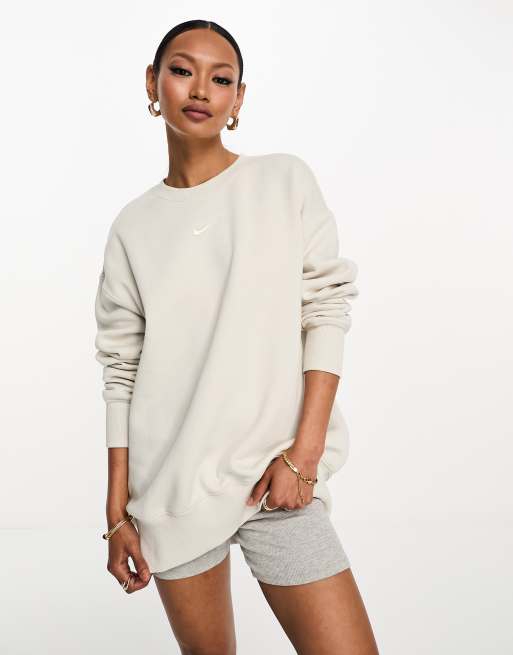 Nike - Oversized fleece sweatshirt met mini-swoosh in lichtbruin