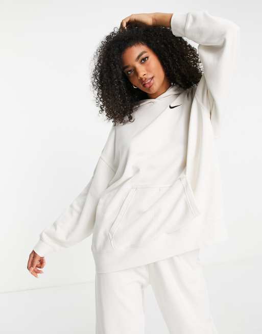 Nike - Oversized hoodie van fleece zonder sluiting met swoosh logo in Phantom wit