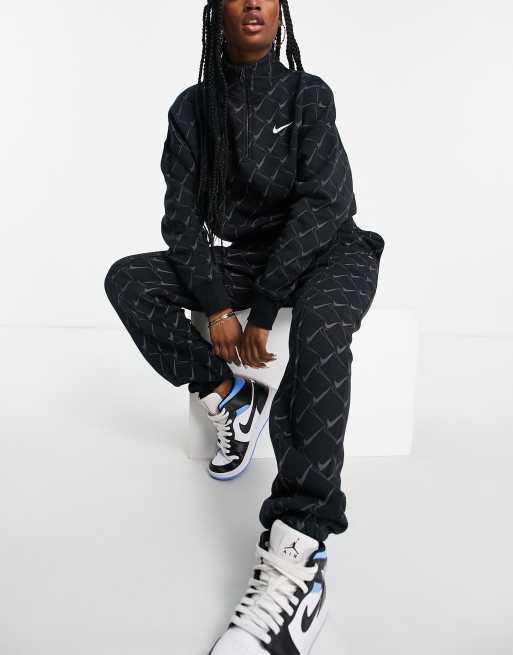 Nike - Oversized joggingbroek bedekt met swoosh-print in zwart