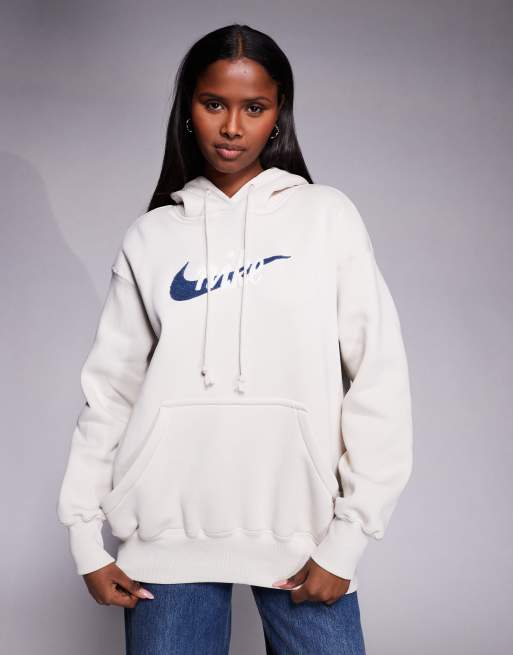 Nike - Phoenix - Oversized fleece hoodie met logo in gebroken wit