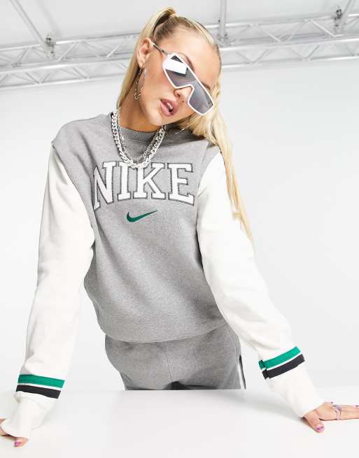 Nike - Retro - Uniseks sweatshirt in collegestijl met ronde hals in gemêleerd grijs