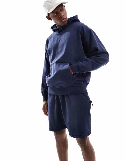 Nike - Solo Swoosh - Shorts van French terry badstof in marineblauw met wassing