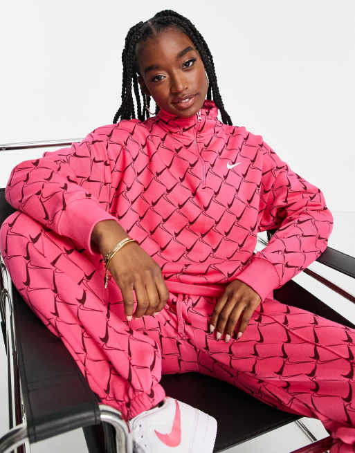 Nike - Sweatshirt met ritsje in de hals en bedekt met swoosh-print in watermeloenroze