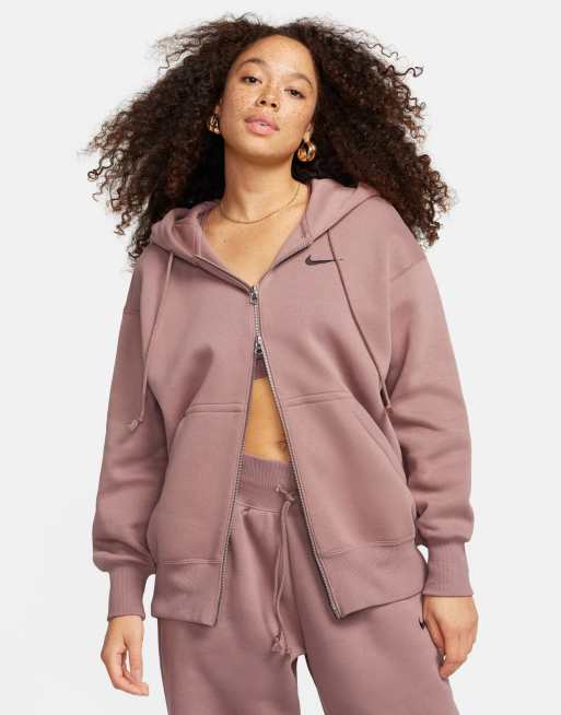 Nike - Uniseks fleece hoodie met mini-swoosh en rits in paars