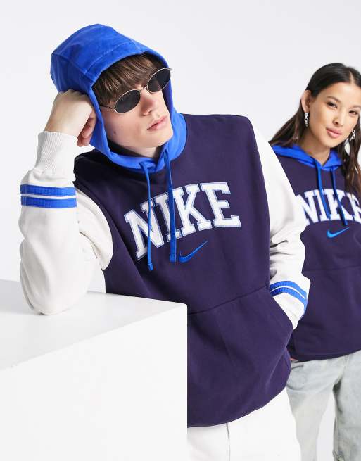 Nike - Unisex retro hoodie met collegestijl in marineblauw