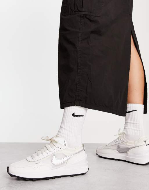 Nike - Waffle One - Sneakers van leer in wit en metallic zilver