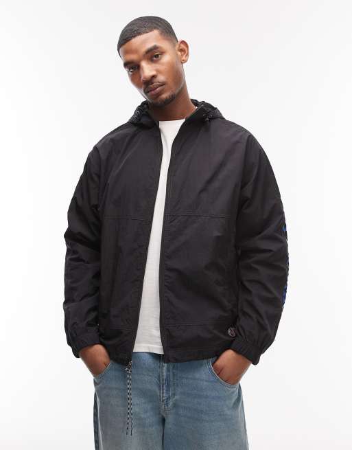 No Problemo - Windjack van nylon met capuchon en logo op de mouw in zwart
