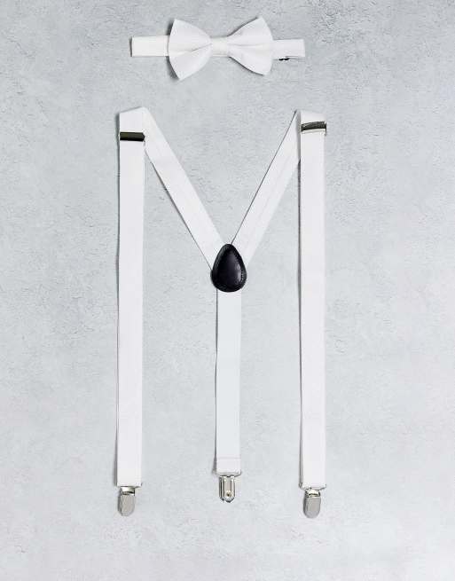 Noak - Set van vlinderdas en bretels met textuur in wit