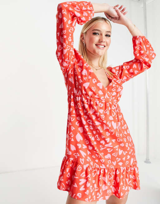 Nobody's Child - Petite - Nette mini jurk met ruches aan de zoom en roze hartjes