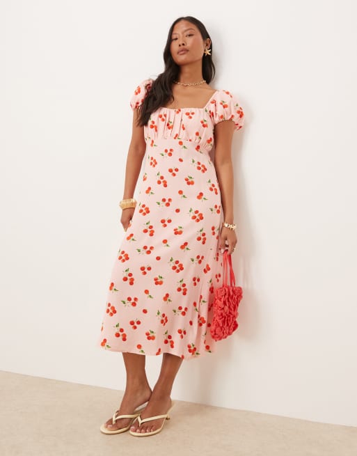 Nobody's Child - Petite - Raven - Midi-jurk met pofmouwen en tomatenprint