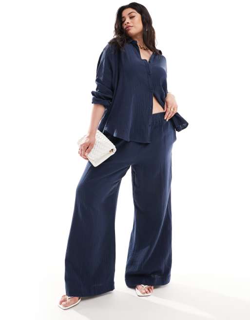 Nobody's Child Plus - Misha - Broeken met wijde pijpen in marineblauw, deel van co-ord set