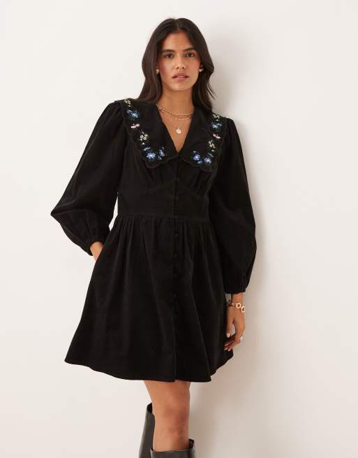 Nobody's Child - Birdie - Mini jurk met borduursels op de kraag in zwart