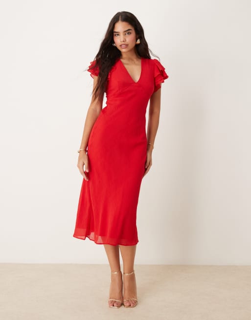 Nobody's Child - Layla - Midaxi jurk met V-hals en ruches op de schouders in rood