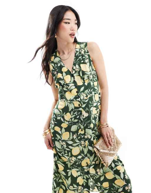 Nobody's Child - Sandra - Midi jurk in groen met citroenenprint