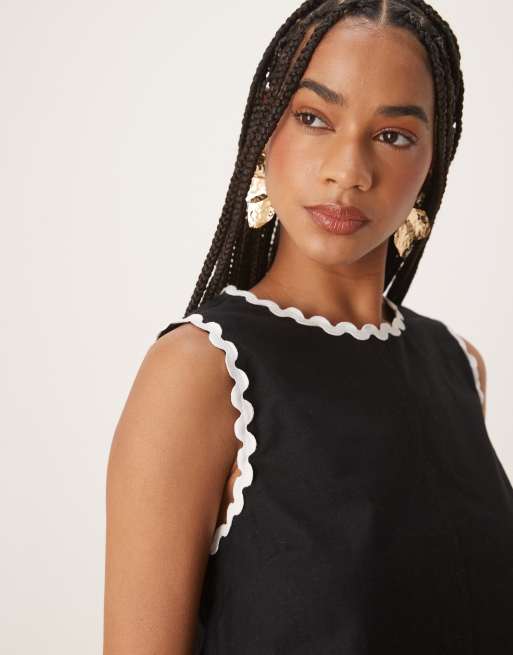 Nobody's Child - Sterling - Swing-tanktop met rikrak randen in zwart, deel van co-ord set