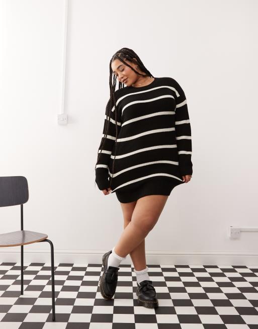 Noisy May Curve - Ruimvallende gestreepte gebreide jurk in zwart en crème