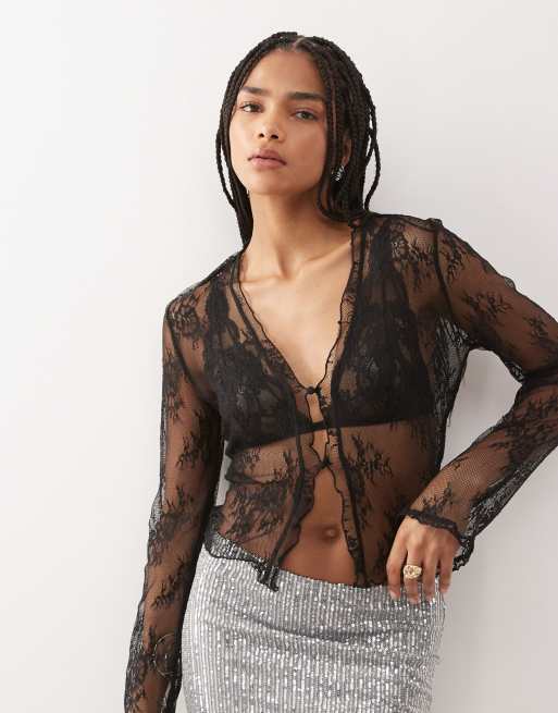 Noisy May - Doorschijnende kanten vest in zwart