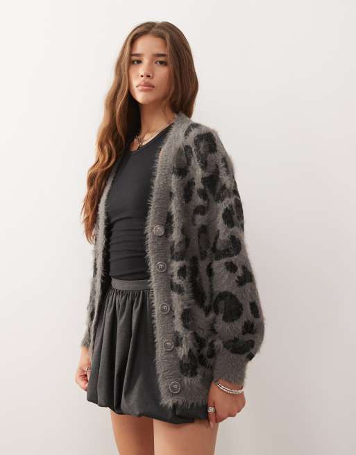 Noisy May - Geborsteld gebreid vest met luipaardprint in grijs