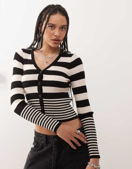 Noisy May - Gestreept vest met knoopsluiting in zwart en crème