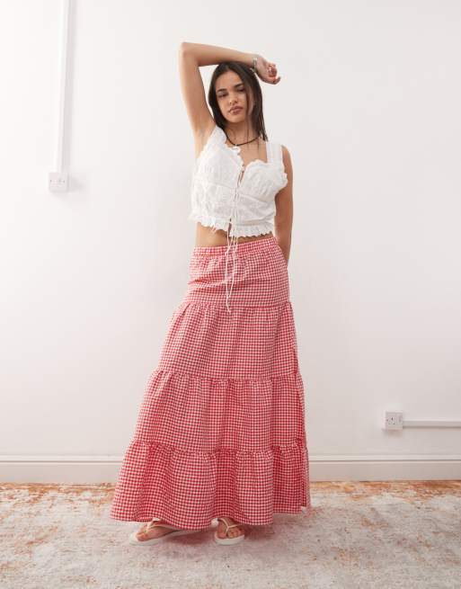Noisy May - Maxi rok met stroken in rode gingham ruit