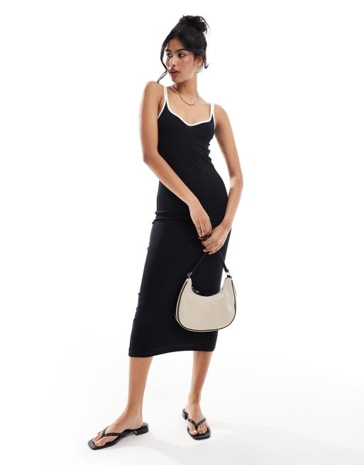 Noisy May - Midi jurk met hartvormige halslijn en contrasterende bandjes in zwart