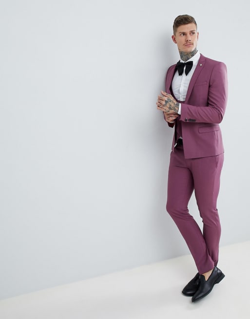 Noose & Monkey - Bruiloftskleding - Superskinny kostuum in paarsrood