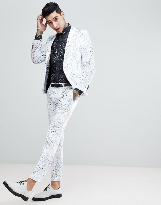 Noose & Monkey - Superskinny fluwelen kostuum in wit