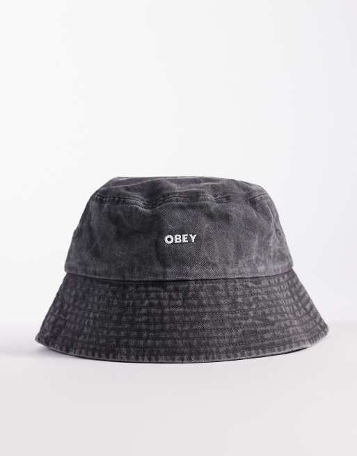 Obey - Bucket hat van keperstof met pigment in zwart met wassing