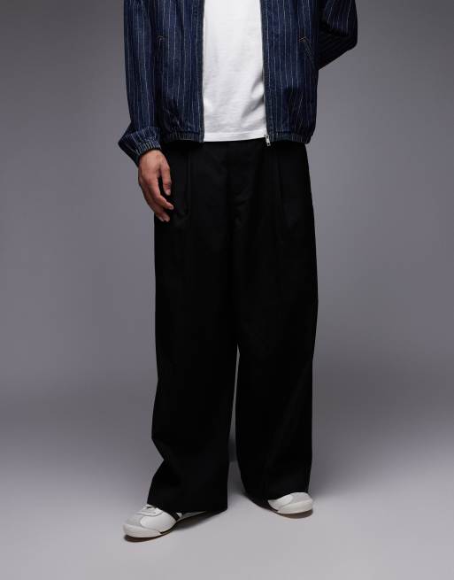 Obey - Oliver - Geplooide broek van keperstof met rechte pijpen in zwart
