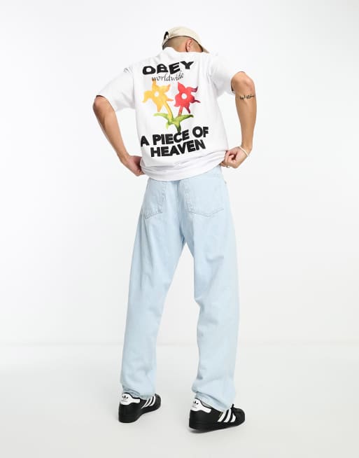 Obey - T-shirt met 'A piece of heaven'-slogan in wit