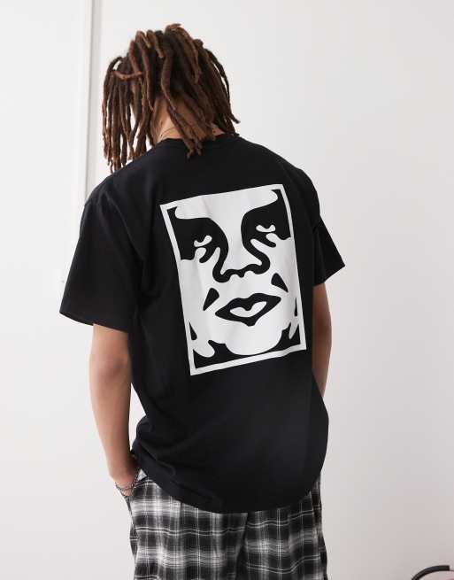 Obey - T-shirt van zware stof met iconische logoprint op de achterkant in zwart