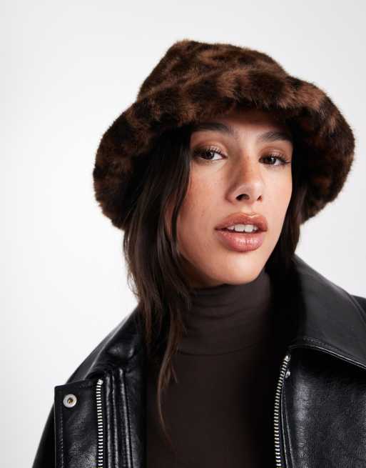 Object - Bucket hat van imitatiebont met bruine luipaardprint