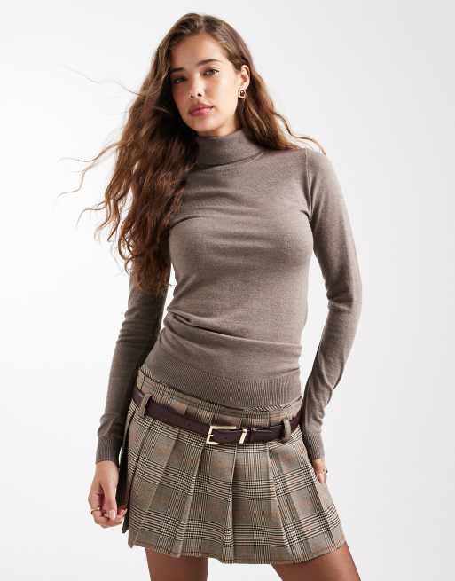 Object - Gebreide top met lange mouwen en col in gemêleerd lichtbruin