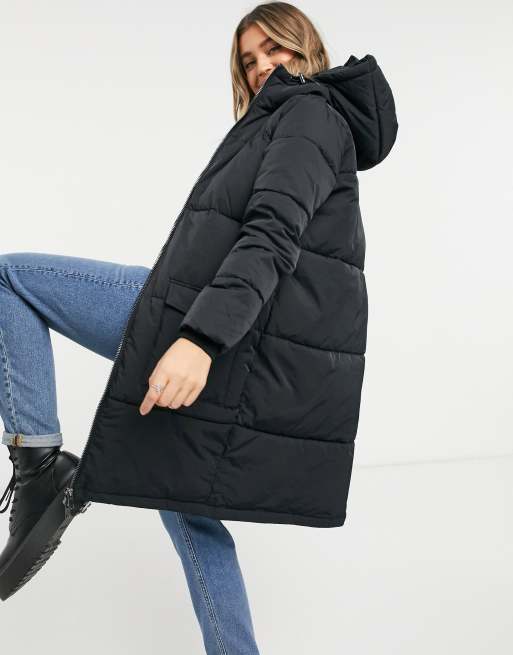Object - Lange gewatteerde jas in zwart