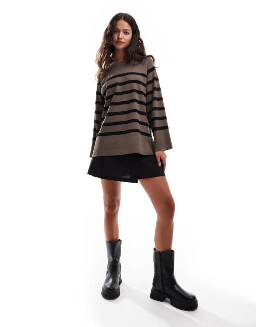 Object - Oversized gebreide gestreepte trui in bruin en zwart