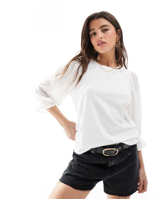 Object - T-shirt met doorschijnende getextureerde mouwen in wit