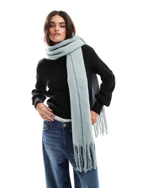 Object - Zachte grofgebreide sjaal met kwastjes in blauw