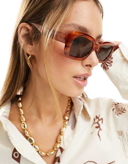 Object - Zonnebril met rechthoekig montuur in gespleten tortoise