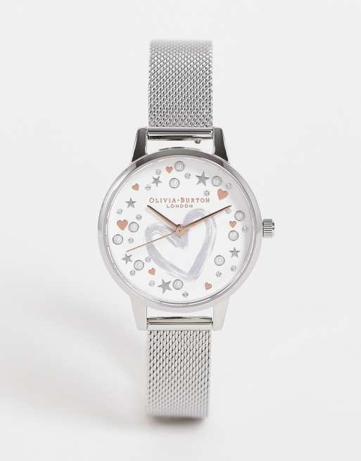 Olivia Burton - Horloge met bandjes van mesh en wijzerplaat met hartje in zilver