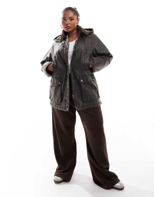 Only Curve - Jas met capuchon in donkerbruin