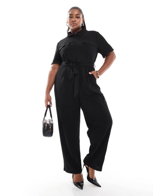 ONLY Curve - Jumpsuit met ceintuur en korte mouwen in zwart