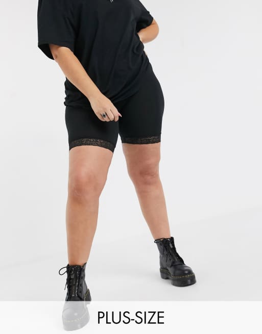 Only - Curve - Leggingshort met kanten rand in zwart