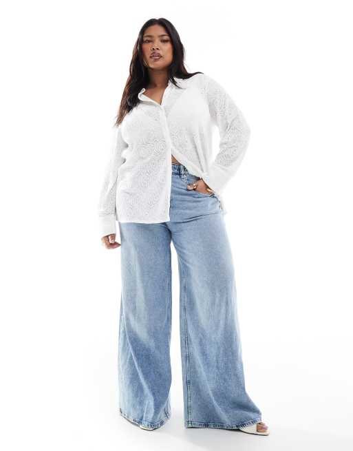 ONLY Curve - Overhemd van kant in wit
