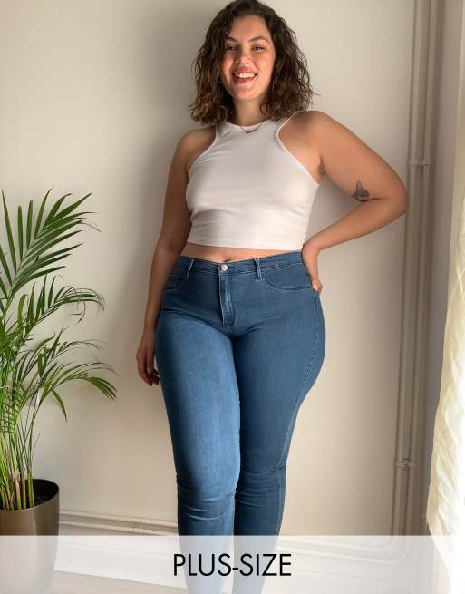Only Curve - Skinny jeans met hoge taille in mid blue wash