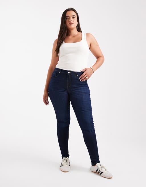 ONLY Curve - Skinny push-up jeans in donkerblauw