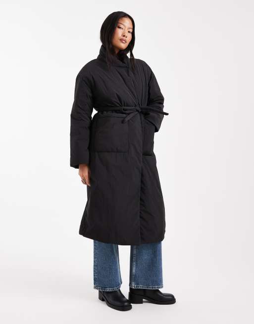 ONLY Petite - Lange jas met gestrikte taille in zwart