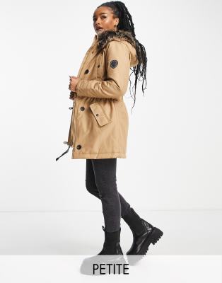 Only Petite - Parkajas van imitatiebont met capuchon in camel