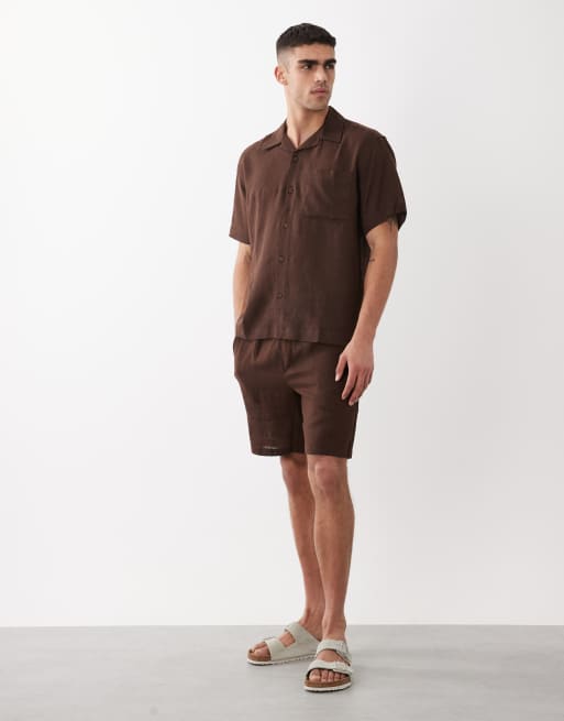 ONLY & SONS - Linnenrijke short in bruin, deel van co-ord set