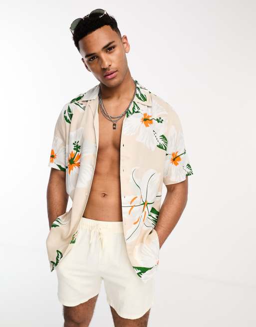 Only & Sons - Overhemd met reverskraag in beige met bloemenprint